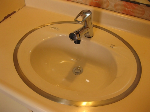 『洗面台を丸ごと変えないといけないの?』と 最初は不安にされていましたが 洗面ボウルだけの取替でも可能です。 既設の水栓金具は ハンドルも固く お水の止まりも悪いようでしたので お取替をオススメしました。