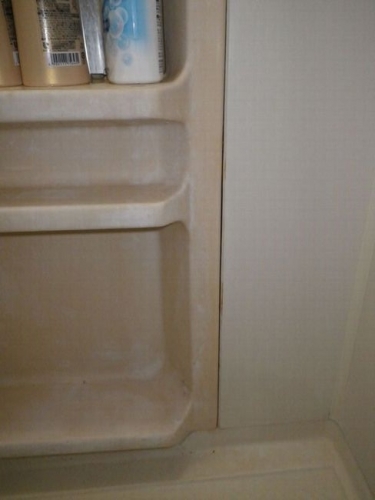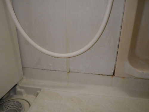 浴室の鏡ユニット周辺のコーキングが切れていたので修繕させていただきました。